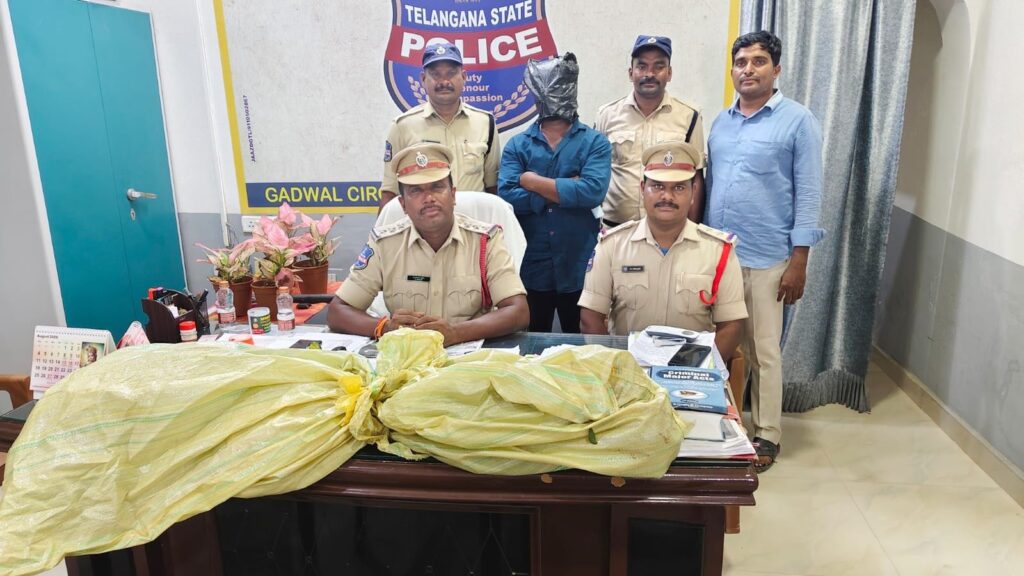 గద్వాల, మన ప్రజాపక్షం : పొలంలో మిరప, పత్తి పంటల మధ్యలో గంజాయి సాగు చేస్తున్నట్టు పోలీసులకు పక్కా సమాచారం అందడంతో గద్వాల జిల్లా గట్టు ఎస్ఐ, వ్యవసాయ అధికారులు, రెవెన్యూ అధికారులు, పంచాయతీ సెక్రటరీతో కలిసి తనిఖీలు నిర్వహించారు. పోలీసులు తొమ్మిది గంజాయి మొక్కలను స్వాధీనం చేసుకొని కేసు నమోదు చేశారు. నిందితుడు బస్వాపురం ప్రాణేష్, వయస్సు 21 సంవత్సరాలు, తోతినోనిదొడ్డి గ్రామానికి చెందిన రైతుగా గుర్తించినట్లు తెలిపారు. గంజాయి సాగు, రవాణా లేదా విక్రయాన్ని ఎవ్వరూ సహించం అని అన్నారు. యువత భవిష్యత్తును నాశనం చేసే ఈ మత్తు పదార్థాలను పూర్తిగా అరికట్టేందుకు కఠిన చర్యలు తీసుకుంటామన్నారు. గంజాయి సాగు లేదా విక్రయం ఎక్కడైనా కనిపిస్తే వెంటనే పోలీసులకు సమాచారం అందించాలని గద్వాల సర్కిల్ ఇన్స్పెక్టర్ టంగుటూరి శ్రీను తెలిపారు.
